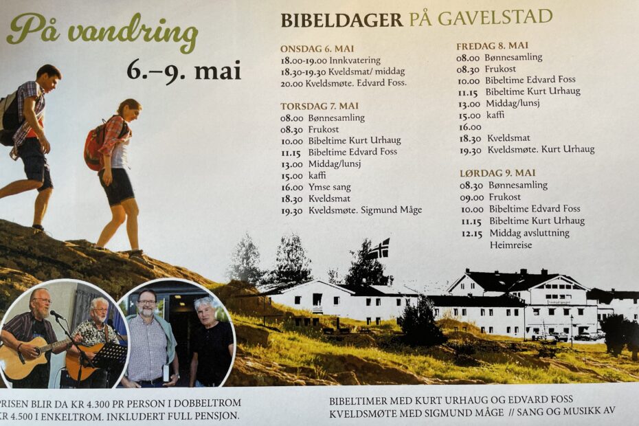 Evangelisten inviterer til bibeldager på Gavelstad Gjestegård fra ons 6. til lør 9. mai.