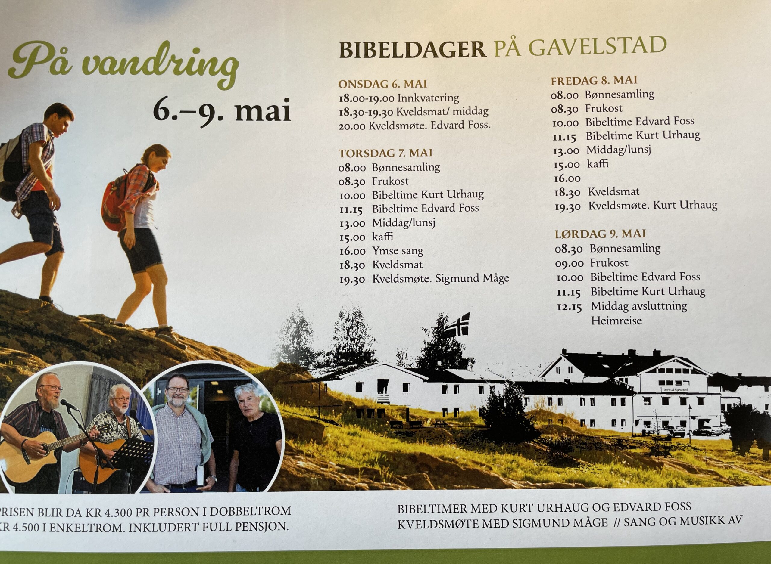Evangelisten inviterer til bibeldager på Gavelstad Gjestegård fra ons 6. til lør 9. mai.